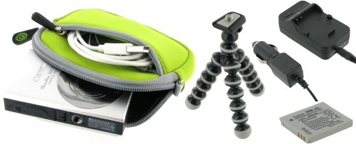 4n1 Combo - Neoprene (Neon Green) Sleeve Case / NB-6L AC DC Charger / Battery / Tripod for Canon PowerShot SD1200IS Digital Camera Green Overview | Sale - Review & Buy at Cheap Price